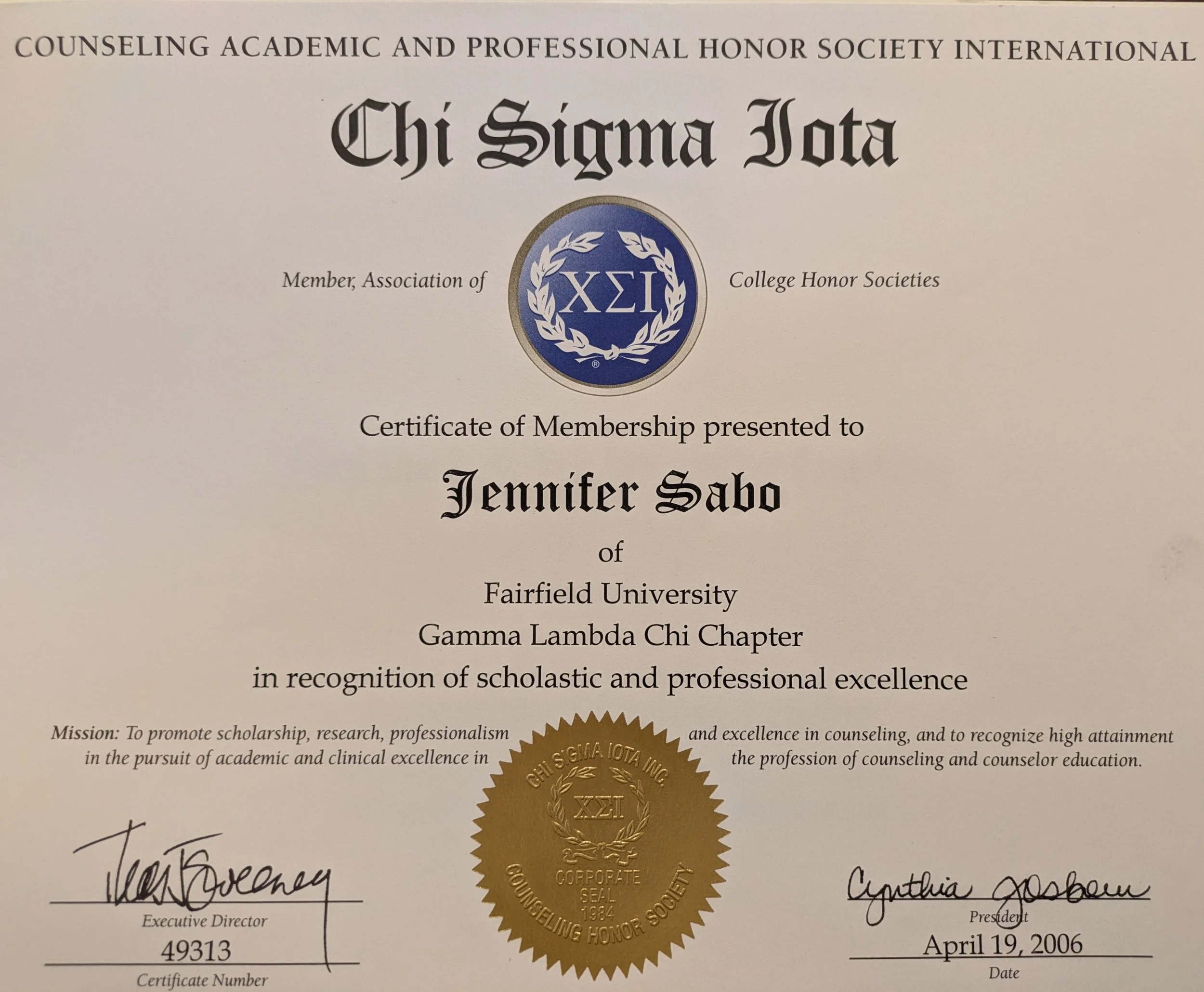 Member of Chi Sigma Honor Society